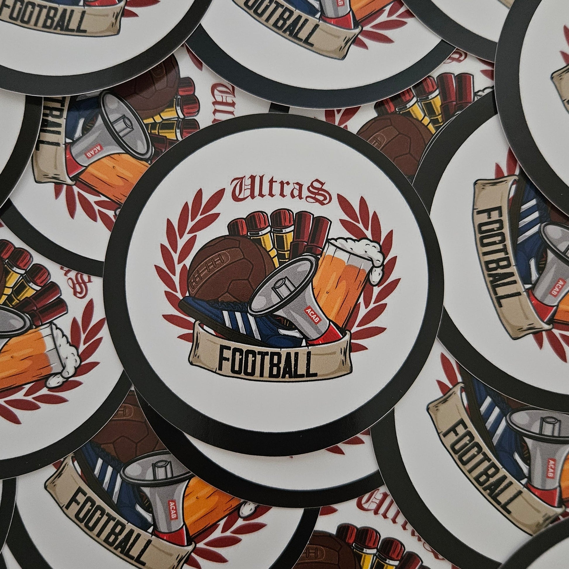 Dieser Sticker vereint klassische Elemente der Fankultur in einem starken Symbol: Fussball, Bier, Megafon und Ultras-Mentalität. Das Motiv steht für Leidenschaft, Gemeinschaft und gelebte Stadionkultur – fernab von Eventfussball und Kommerz.